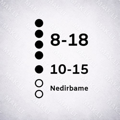 Šis darbo laiko lipdukas pagamintas iš aukštos kokybės lipnios plėvelės ir išpjaustytas ploteriu. Lipdukas neturi fono, todėl užklijavus matomas tik tekstas ir simboliai. Dėl to lipdukas atrodo tvarkingai ir profesionaliai ant stiklo ar kitų lygių paviršių.